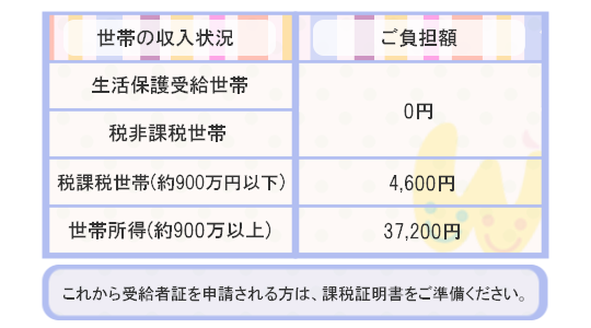 ※負担上限月額や負担額に関しては、お住まいの行政窓口にお尋ねください。市町村によっては、内容が異なることがございます。